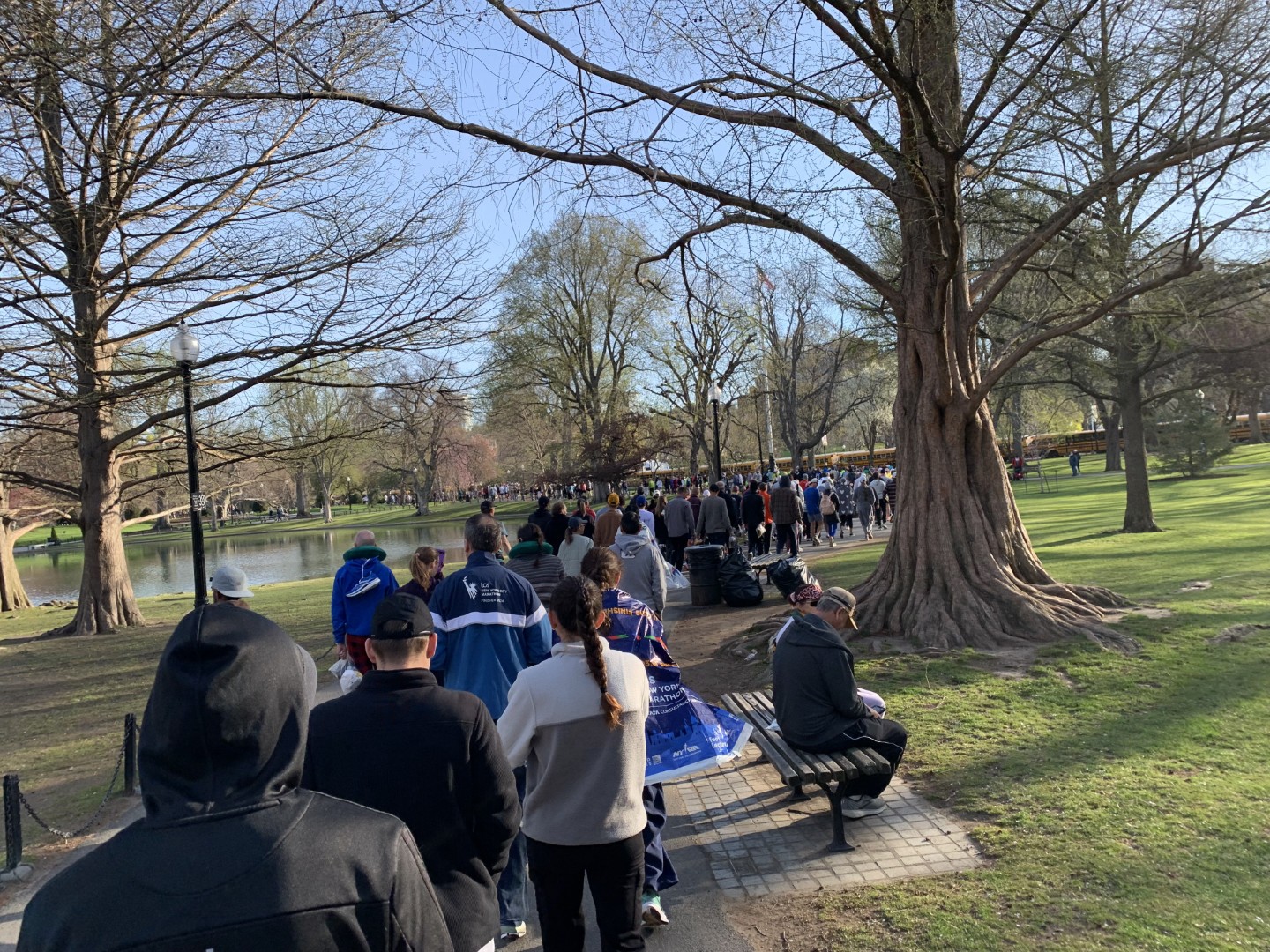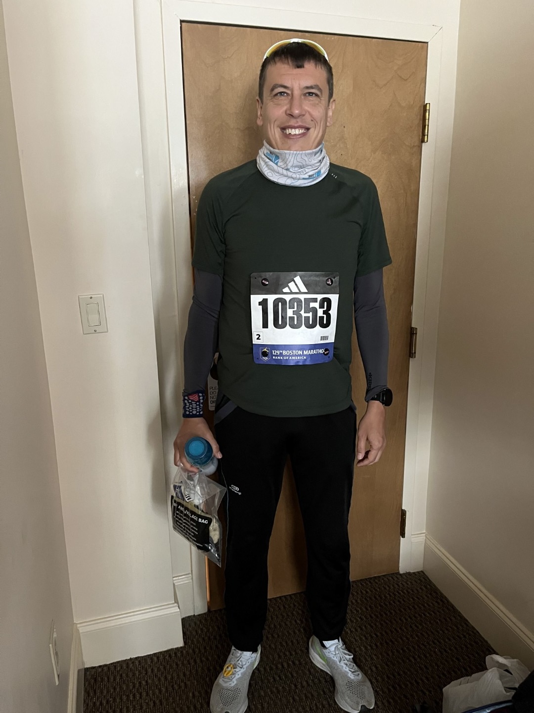 Forse è stato un bene perchè così, dopo un viaggio di un'oretta con il riscaldamento del bus a "palla", arriviamo alla partenza con solo 1 ora di anticipo. durante il viaggio faccio anche qualche chiacchiera con il mio vicino che è già alla sua quinta Boston e mi da qualche consiglio!